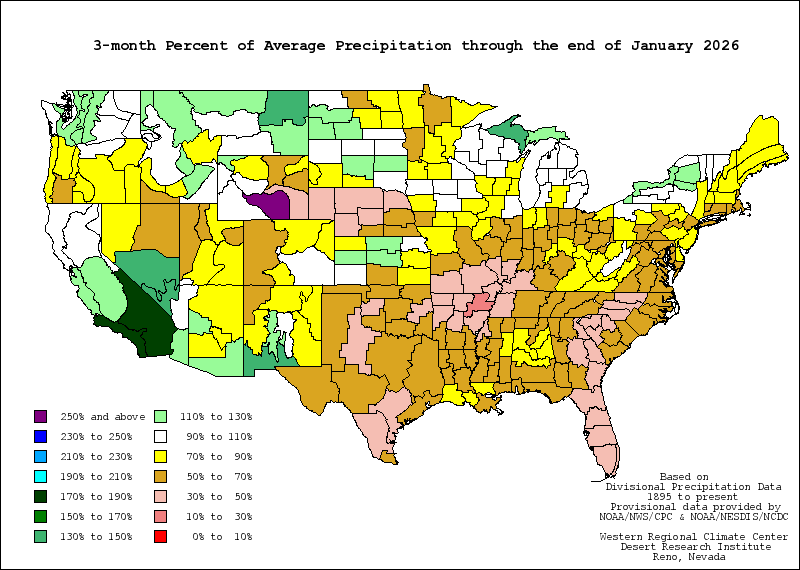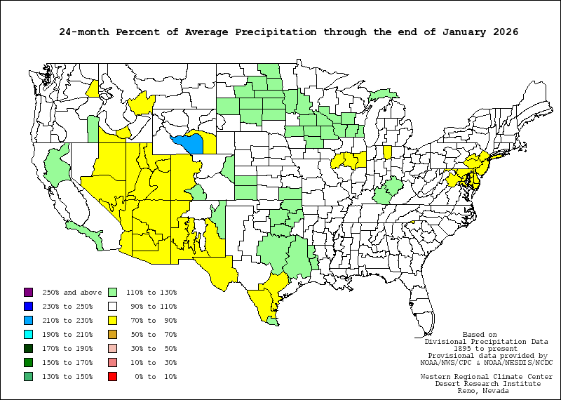 The Palmer Index can also reflect excess rain using a corresponding level reflected by plus figures; i.e., 0 is normal, plus 2 is moderate rainfall, etc. The advantage of the Palmer Index is that it is standardized to local climate, so it can be applied to any part of the country to demonstrate relative drought or rainfall conditions. The negative is that it is not as good for short term forecasts, and is not particularly useful in calculating supplies of water locked up in snow, so it works best east of the Continental Divide.