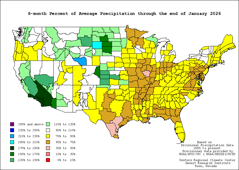 The Palmer Index was developed by Wayne Palmer in the 1960s and uses temperature and rainfall information in a formula to determine dryness. The Palmer Index is most effective in determining long term drought—a matter of several months—and is not as good with short-term forecasts (a matter of weeks). It uses a 0 as normal, and drought is shown in terms of minus numbers; for example, minus 2 is moderate drought, minus 3 is severe drought, and minus 4 is extreme drought.